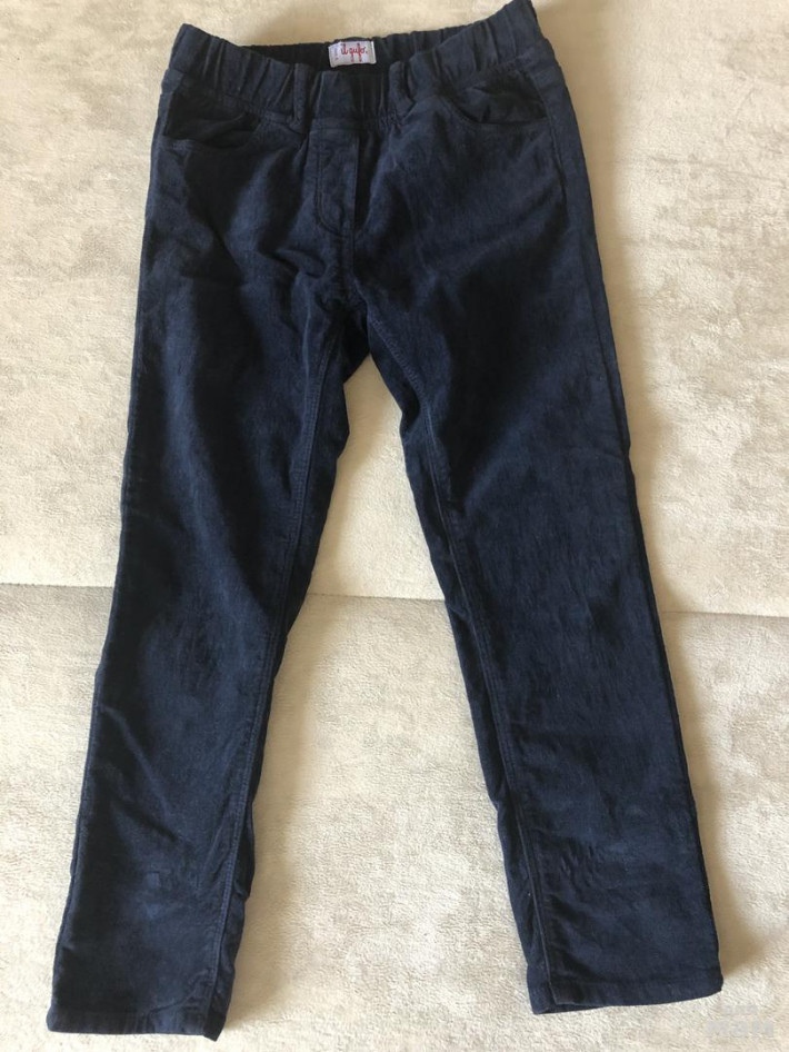 Брюки в очень хорошем состоянии , практически в отлично , состав - 97 хб, 3 спандекс , ткань сверху оч мягкая - бархатная . Пояс на резинке . Длина бирючины - 64, шаговый - 47.