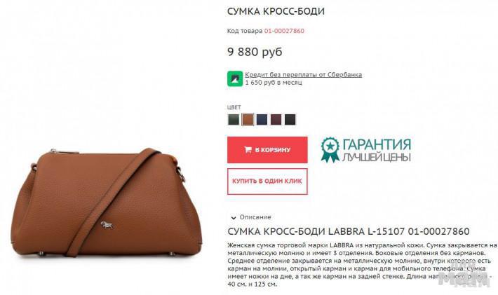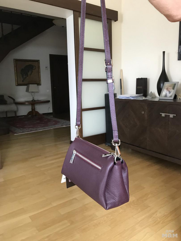 Женская сумка торговой марки LABBRA из натуральной кожи. Сумка закрывается на металлическую молнию и имеет 3 отделения. Боковые отделения без карманов. Среднее отделение закрывается на металлическую молнию, внутри которого есть карман на молнии, открытый карман и карман для мобильного телефона. Сумка имеет ножки на дне, а так же карман на задней стенке. Сумка имеет два ремня, один короткий , второй длинный, длина наплечного ремня - 40 см. и 125 см.