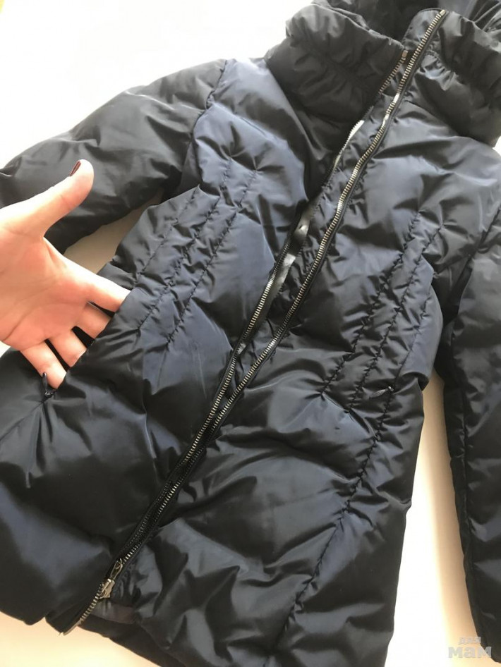Отличная приталенная модель, очень красиво сидит, высокое горло, капюшон отстегивается