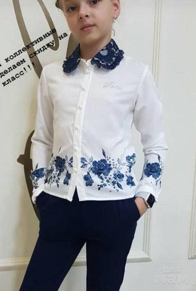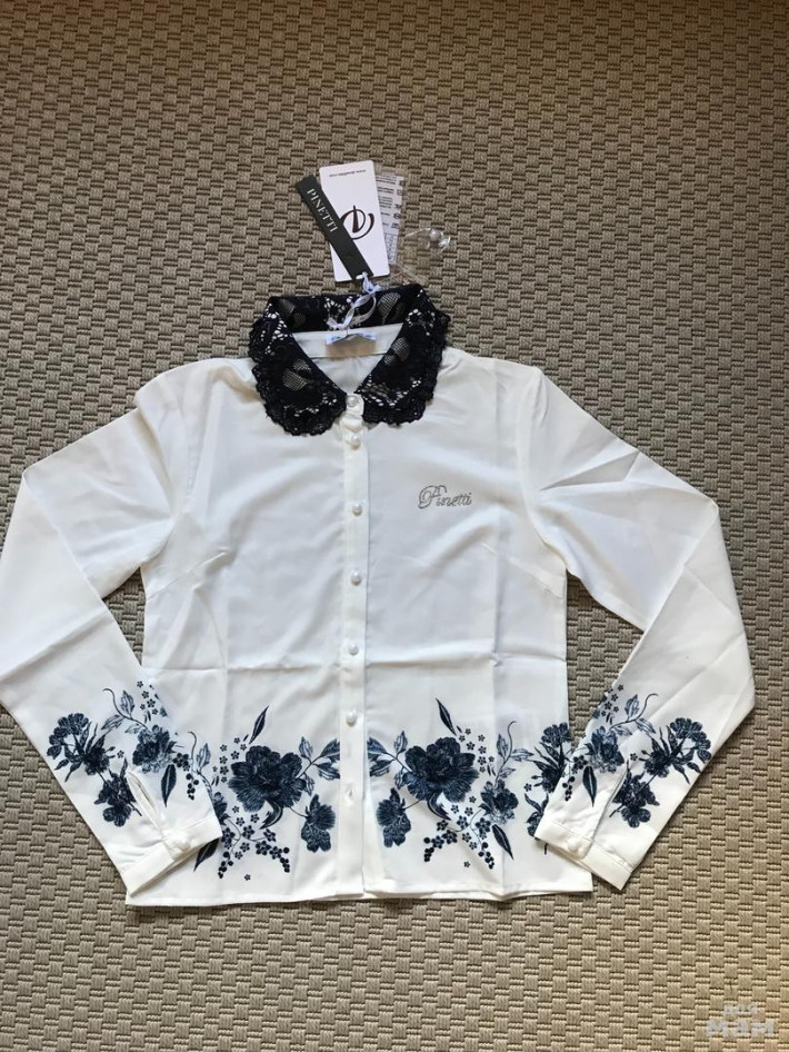 Шикарная школьная блузка Pinetti 146 рост, рукав 55 см, новая, вискоза 55%, полиэстер 42, эластан 3%, очень красивая. Кружево и рисунок синего цвета.