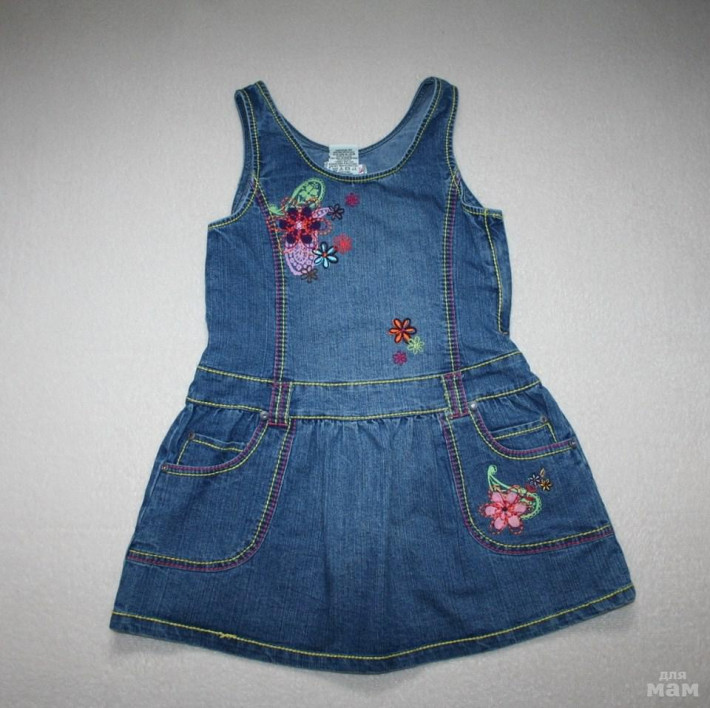 7. сарафан джинсовый 600 р - носили мало . сбоку молния , размер 6 лет . можно с роста 110 см ..