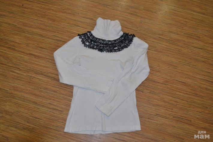 Водолазка ажурным воротничком, р.134, хлопок. Цена 250 рублей.