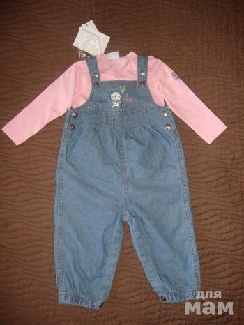 Продам новый (с бирками) комплект: джинсовый комбинезончик+хлопковая кофточка. Размер 74-80.