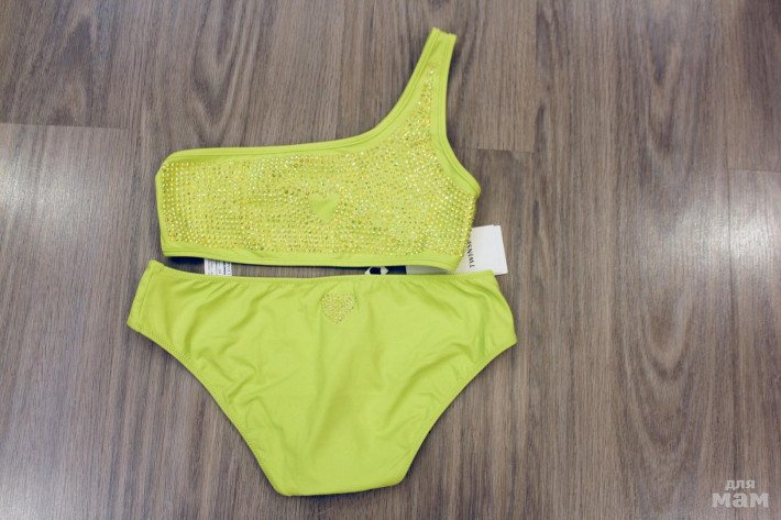 Новый итальянский купальник Твин сет, р.14 лет, неоновый, нереально яркий, верх весь в стразах, подойдет на 10-12 лет, в зависимости от комплекции ребенка, 3500 руб.