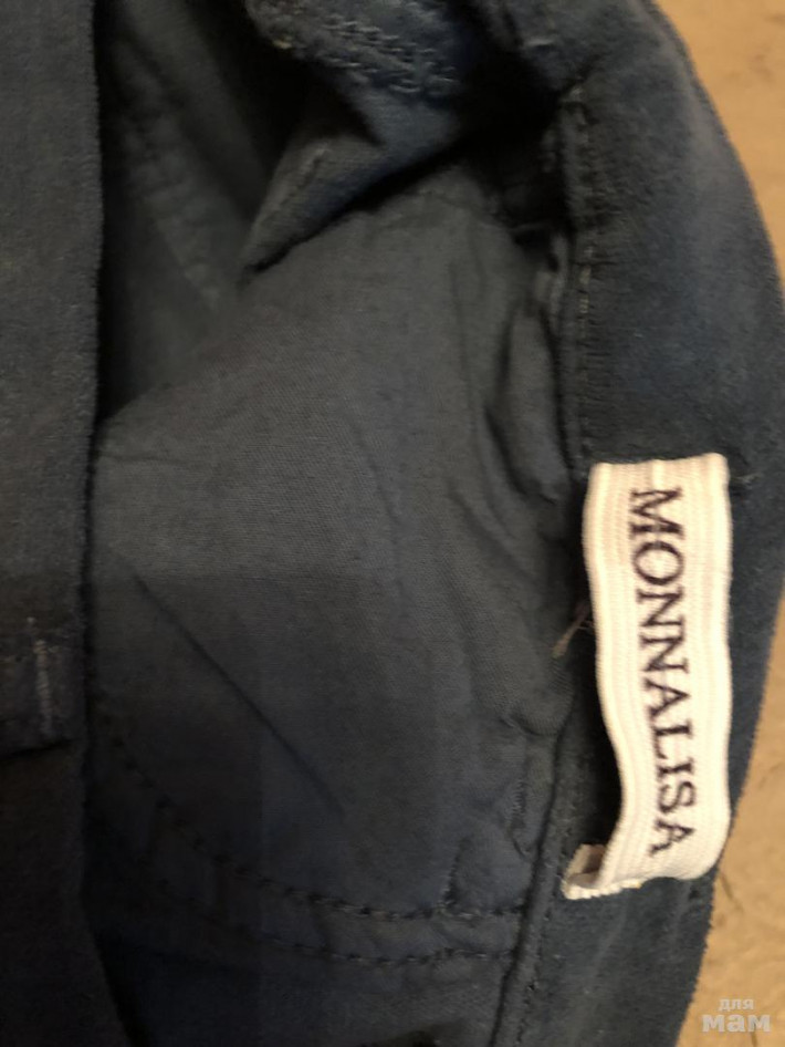 Брюки Monnalisa. Размер 158(13). В поясе утяжки. Цвет серо-голубой, внизу очень красивые 4-цветные стразы. 1500руб. Стоили 7560р., куплены со скидкой за 3780р.