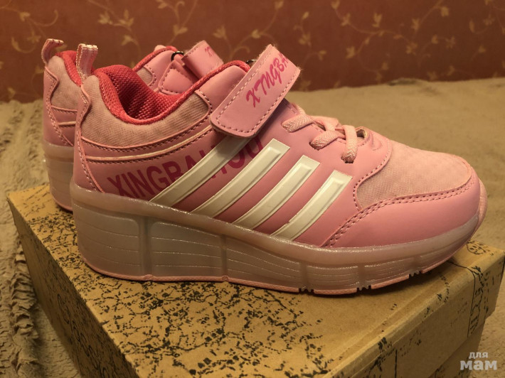 Мигающие кроссовки-ролики. Размер 34. Новые, только померили дома. На каждой пятке кнопка для выдвижения колесика, мигающая подошва. 1000руб. (Покупала за 3500 в ТЦ «Мега»)