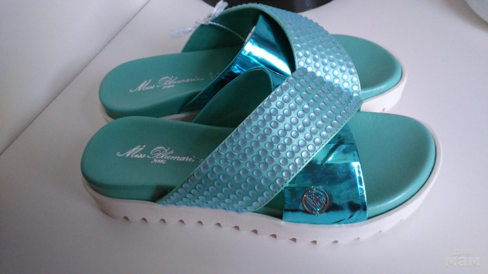 Безумно красивые, удобные новые шлепки от Miss Blumarine. Отдавала за них 6800, привозила из самой Италии, но увы перескочили. Стелька 19,3-19,5 см. Подошва МЕГА удобная! Красивая кожа под металлик или как ее еще называют зеркальная! Украшены прозрачными стразами стеклярусом, который блестит на солнышке.