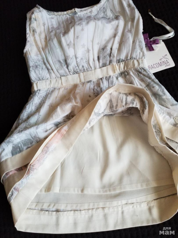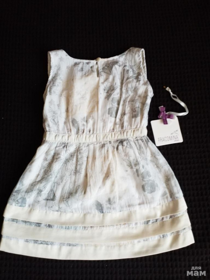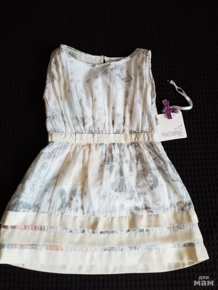 Шикарное хлопковые платье итальянской брендовой марки Fracomina mini. Размер 3 года. Длинна 50 см, п/талии 26 см. Сбоку молния, сзади пуговка. Низ отделан валанами из вискозного шелка, платье на подкладке, верх легкий, тонкий хлопок, талия не тянется. Для лета самое то. Б/У мало, состояние очень хорошее. Можно носить с 2 лет. Покупала в Винни почти за 3000р. Почта да.