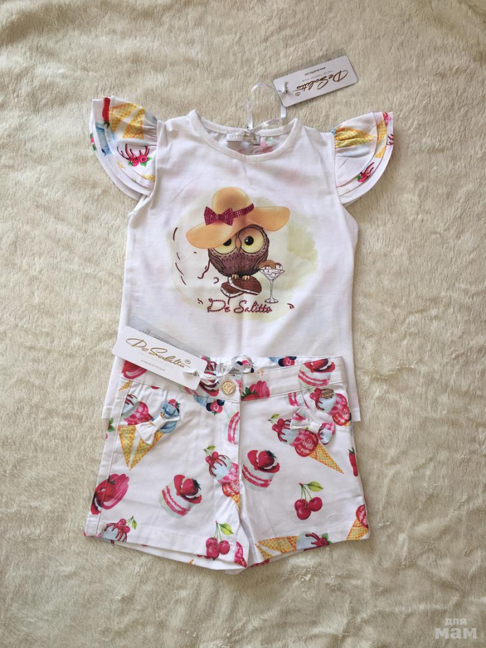 Новый комплект DeSalitto, размер указан 5 лет, но можно носить от 4 до 6 лет, талия регулируется на шортах.