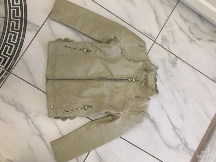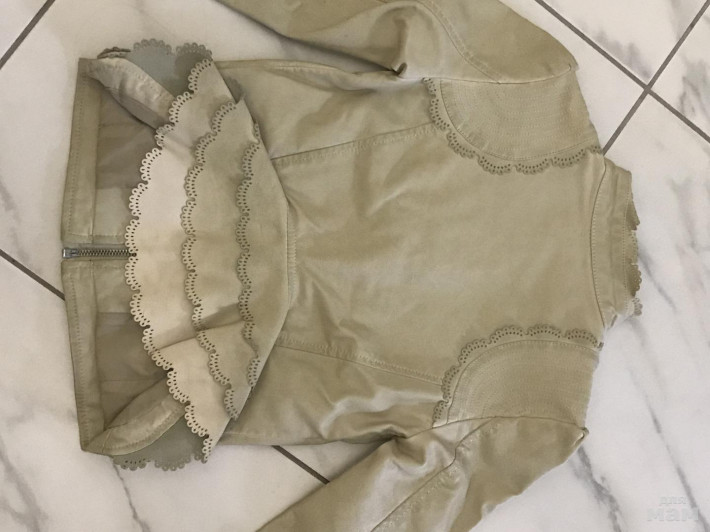 Курточка под кожу . Очень стильно смотрится, на спинке эффектно скроен низ. Размер 5 лет, но можно и раньше.