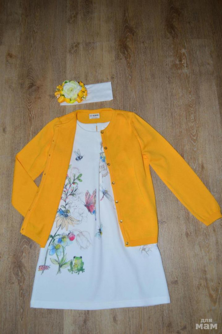 Продам платье некст (маркировка 122, но большемерит до роста 134) новое- переросли, очень красивый принт с блестками, подойдет на ребенка любой комплекции, цена 1100р. Кардиган вайкики ПРОДАН и повязка ручной работы, заказывала у мастерицы, но не пришлось одеть, тоже новая (400р.). Пока продажа только комплектом- 1300р.