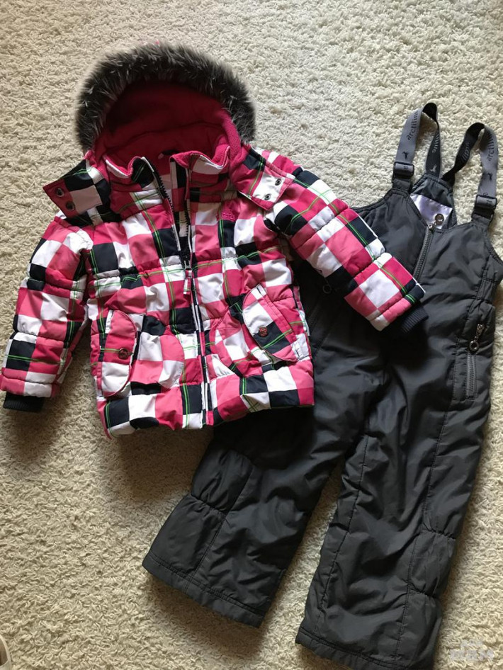 Очень тёплый зимник комплект на 3 года ( от 2 до 3,5’) Куртка Gusti на флиссе, комбез другой фирмы, б/у но в хорошем состоянии , носили мало, один сезон на смену с слитным комбезом.
