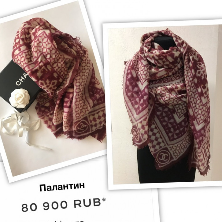 Палантин огромный CHANEL. 100% кашемир. Полный комплект бутика. Цена 45 тыс