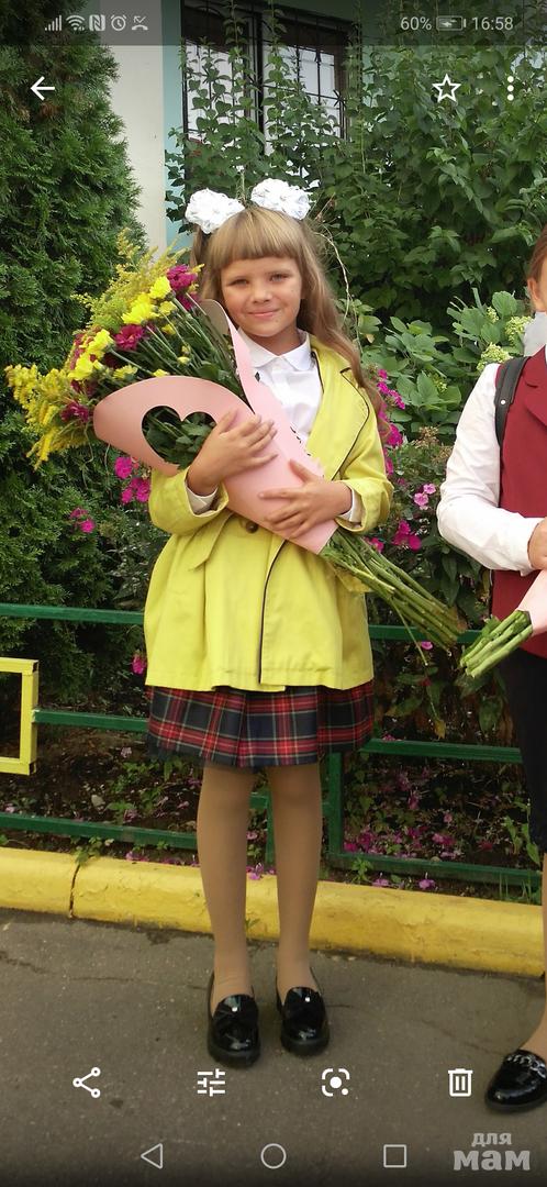 У меня дочка стандартная) не худая не толстентуая, этот сарафанчик сидит отлично, не в обтяг, что мы носили во 2 классе , что в 3, это не один сарафан, во 2 классе был размер 134, в 3 классе 146, мы его очень мало одевали, так что он в отличнейшем состоянии, ог 35 длинна по спинке 74см
