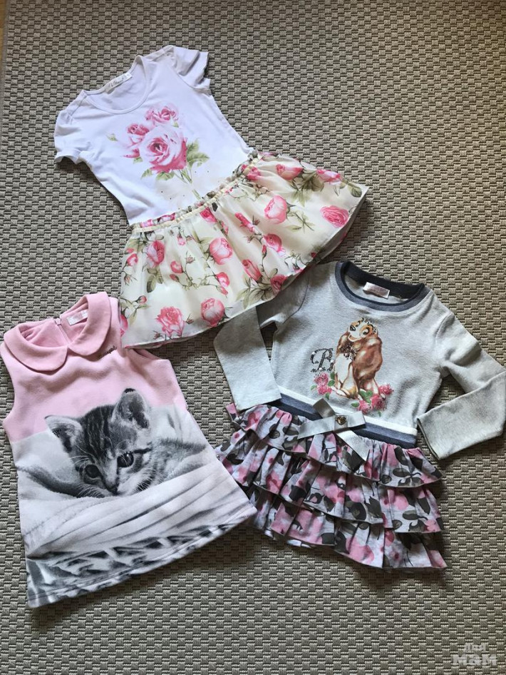 Продам пакетом б/у очень красивые и в хорошем состоянии: сарафан на Флисе фирмы Colaber на 2-3 года, платье Vitacci трикотажное на 3 года, подьюбник хлопок 100% + подьюбник Фатин и платье с длинным рукавом фирмы Colabear 98 рост на 2-4 года