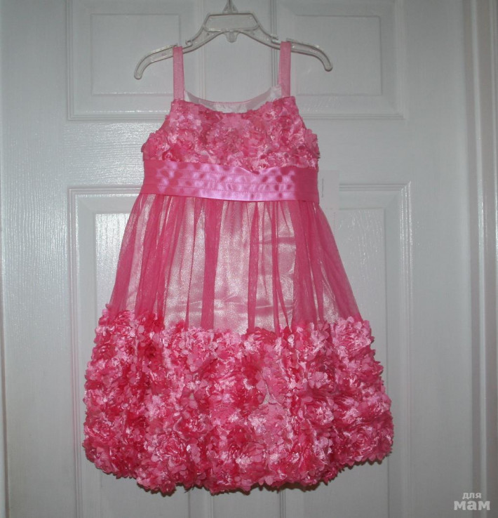 НОВОЕ С ЭТИКЕТКОЙ очень красивое платье , розовое 5 лет длина 59 см , баллон со спины завязывается на бант . молния в боку . куплено в США . цвет розовый ..фирма Bonnie jean.