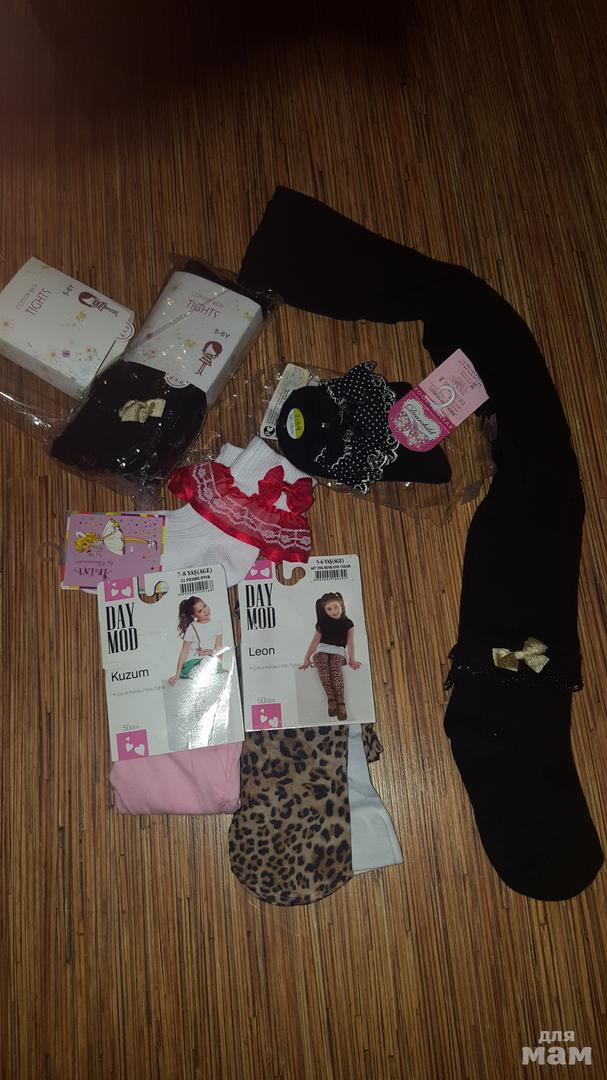 Пакет новых колготок и носочков на 5-6лет. В пакете : 2 пары чёрных колготок с декором ,хлопок-эластан (проверенное качество!), 2 пары колготок 50den(отлично носятся!), 3 пары носочков! Цена 900руб. за весь пакет. Только колготки чёрные покупала по 500руб. за штуку.