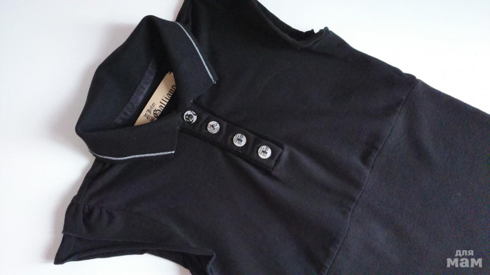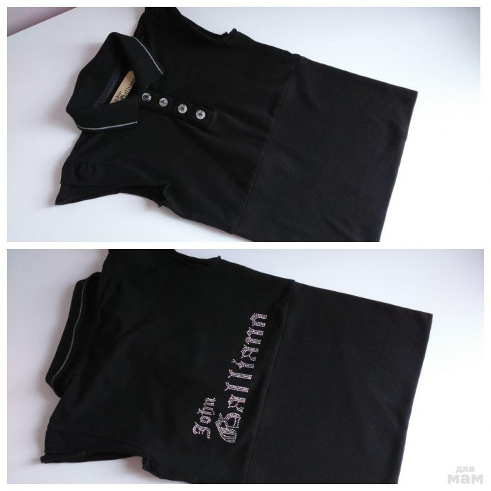 Стильное поло черного цвета, спинка украшена стразами. Покупала очень дорого. Надевали несколько раз в школу в 1 классе. Размер 6 л, но Гальяно как правило чуть большемерит. Мы в 7 надевали. Находка для Стройных Девочек.