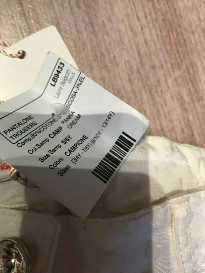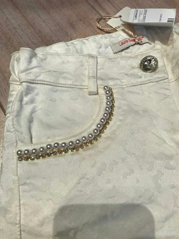 Laura Biagiotti!Дорогая коллекция!Крутые!Ткань тонкая!Очень красивые!Жемчуг!Камни!Кружево! Хоть в мир хоть в пир!Размер 5-6 лет.Цена 4000+почта.Отдам срочно за 3000+почта.Замеры длина 68 общая,шаговый 56 см. Сегодня отдам за 2700+почта