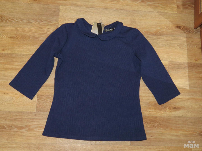 Стильная блузка с воротником, выполненная из текстурного материала.Прекрасная модель для повседневной носки, отлично сочетается с брюками и юбками.Блузка Bestia выполнена из плотного фактурного трикотажа. Модель облегающего силуэта с рукавами длиной 3/4 и отложным воротником. На спинке изделие застегивается на пуговицу. Состав:60% хлопок, 40% полиэстер. Размер: 50. Длина 60 см, грудь 50 см, рукав от плеча 42 см. НОВАЯ! Встреча: только! м. Лермонтовский проспект.
