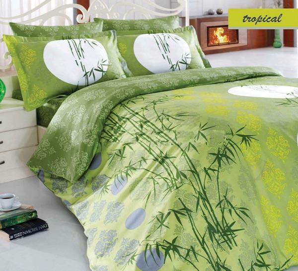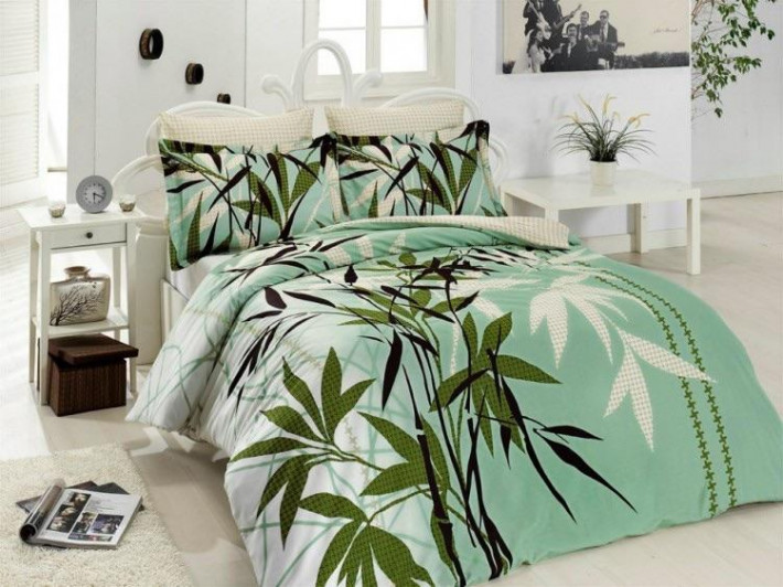Бамбук - материал нечто среднее между шелком и сатином, но по своим свойствам превосходит как шелк, так и сатин. Бамбуковое постельное белье очень нежное и мягкое на ощупь, приятно к телу человека, обладает естественными природными антибактериальными свойствами, бамбуковое белье нежное как шелк и прочное как сатин, выдерживает множественные стирки, не теряя при этом исходного блеска красок и сохраняя присущую ему мягкость.