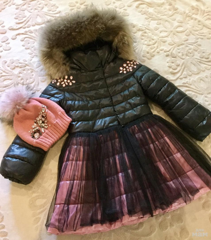 В комплекте с шапкой, юбочка отстегивается, мех натуральный