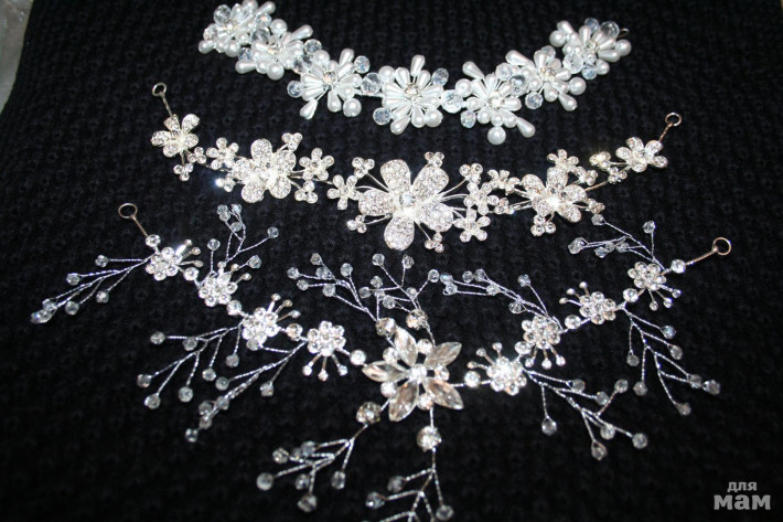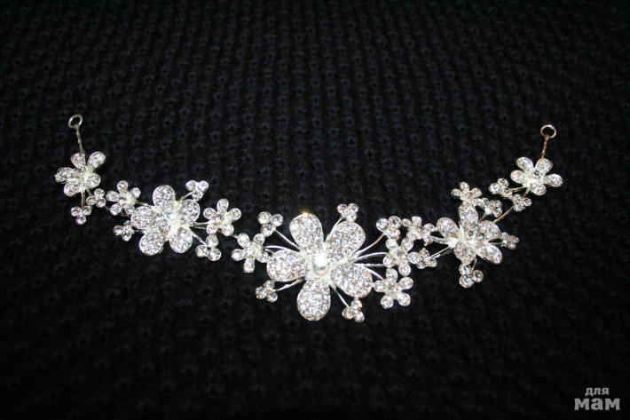 Очень нежно смотрится на прическе украшение. Стразы горят, пылают огнем! Проволочка гнется в разные стороны. Фиксируется невидимками за колечки