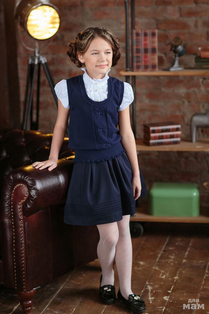 5. Комплект, синие жилет +юбка, 134р., 3000р.
