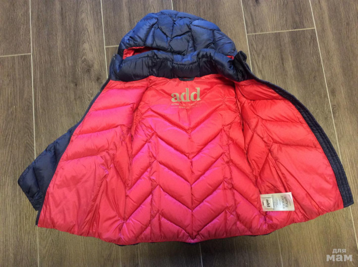 Очень легкая пуховка ADD на 4 года, наша самая любимая, купила бы такую же побольше,мы носили с 2,5 лет, очень красивый синий цвет, в хорошем состоянии, есть несколько затяжек, в носке не видно.