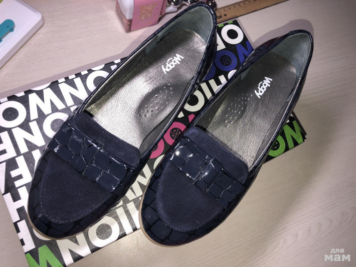 Пристрою новые красивейшие туфельки синего цвета, мягкие, удобные. Для школы самое то. Мы в прошлый год переросли, идут в размер. Пришлось купить для школы в прошлом году большего размера (36). Дочь была в восторге. Носила весь год, ничего не произошло, лак не потерся, не потрескался, не потускнел.