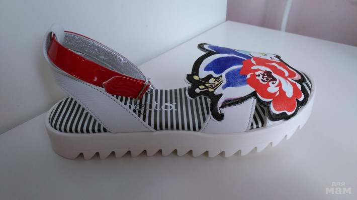 Очень красивые и универсальные, сочетают в себе 3 основных цвета белый, красный и синий, подойдут под платья и юбки этой гаммы! А еще немаловажно - это очень удобная подошва!!!