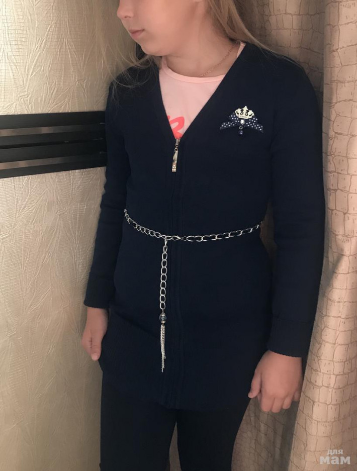 Продам новый кардиган для девочки на молнии с поясом , подойдёт на худенькую девочку с ростом 140 , или не худенькую 134. У нас рост 140 но плотное телосложение с животиком , очень обтягивает, дочка любит что было посвободнее :( у нас рост 140см ;обхват груди 72см; обхват живота по пупку 75 см)