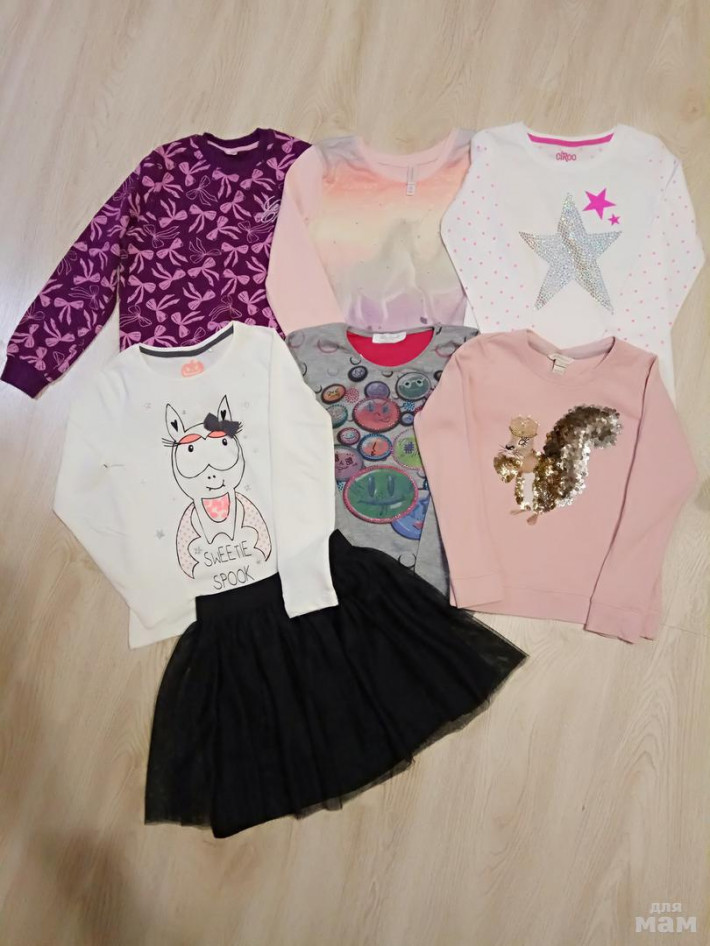 Кофточки (маркировки разные, что-то большемерит, но все идут на рост 134) + комплект юбка и лонг с летучей мышкой на рост 134.