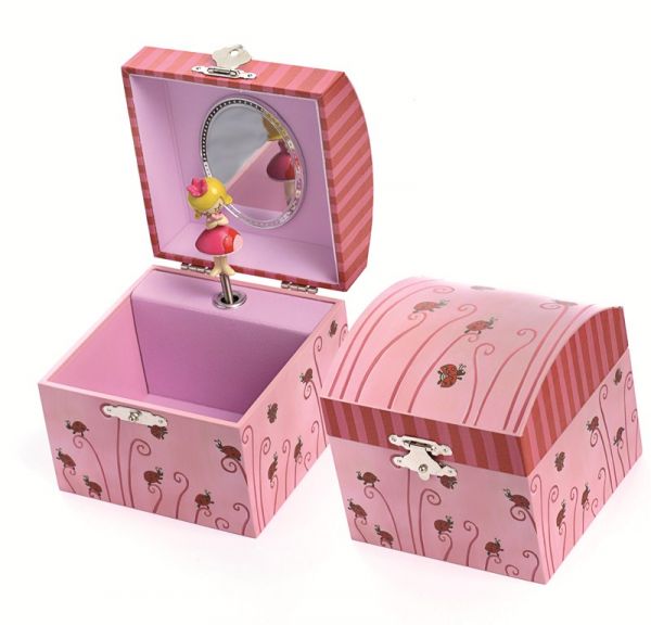 Музыкальная шкатулка, украшенная изображениями маленьких божьих коровок, станет приятным подарком любой девочке.