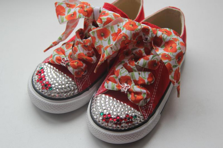 Кеды Converse оригинал, легкие удобнейшие на лето. Носики украшены стразами с рисунком "Цветочки", Ленты с Маками в стиле Roberto Cavalli. К летним нарядам.