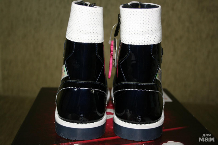 Новые ботинки, нат.кожа(лак)/шерстяной текстиль, цвет темно-синий, сбоку молния, по стельке 20,0см.