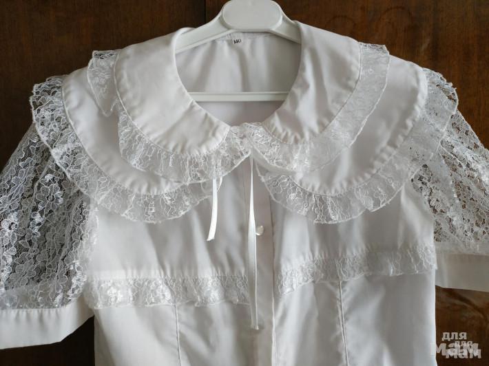Блузка очень красивая, белая, размер 134-140, б/у очень мало, состояние отличное.