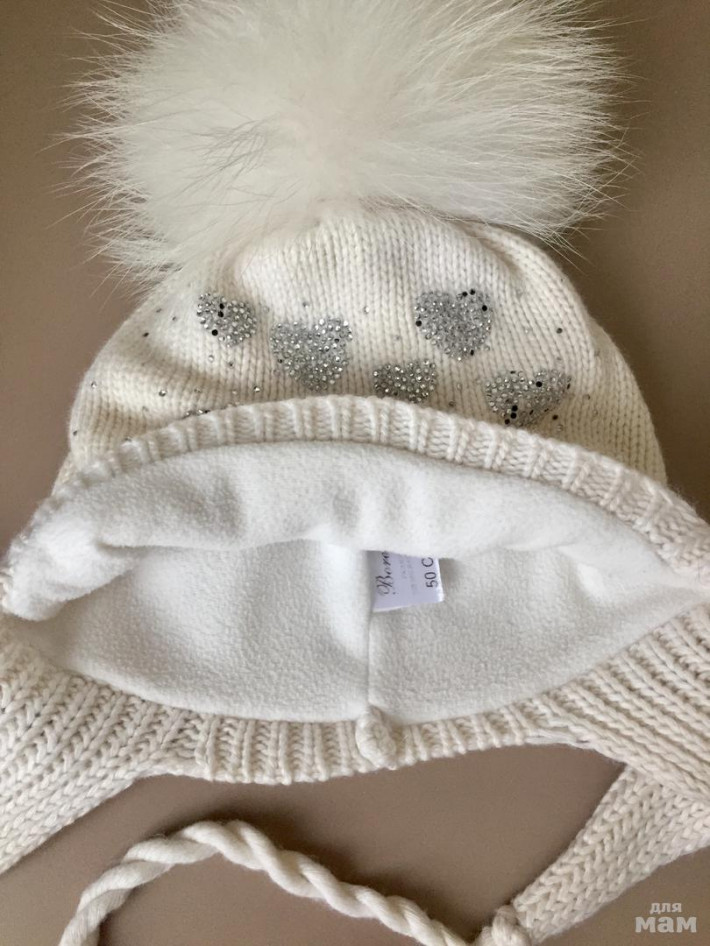 Шапочка Борелли с пышным помпоном. Размер на этикетке 50 см. Сейчас отдаю за 800 руб.