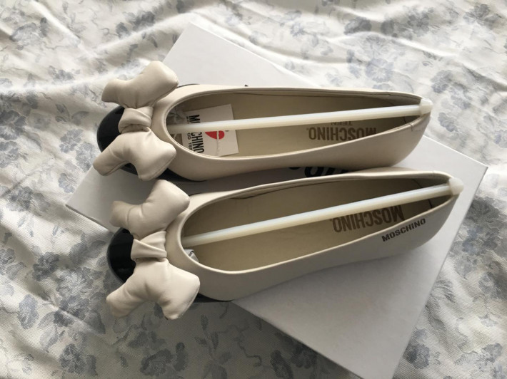 Новые, очень симпатичные туфельки, чёрный лак+молочная кожа, бантики кожа, подошва белая постельке 21,5см.