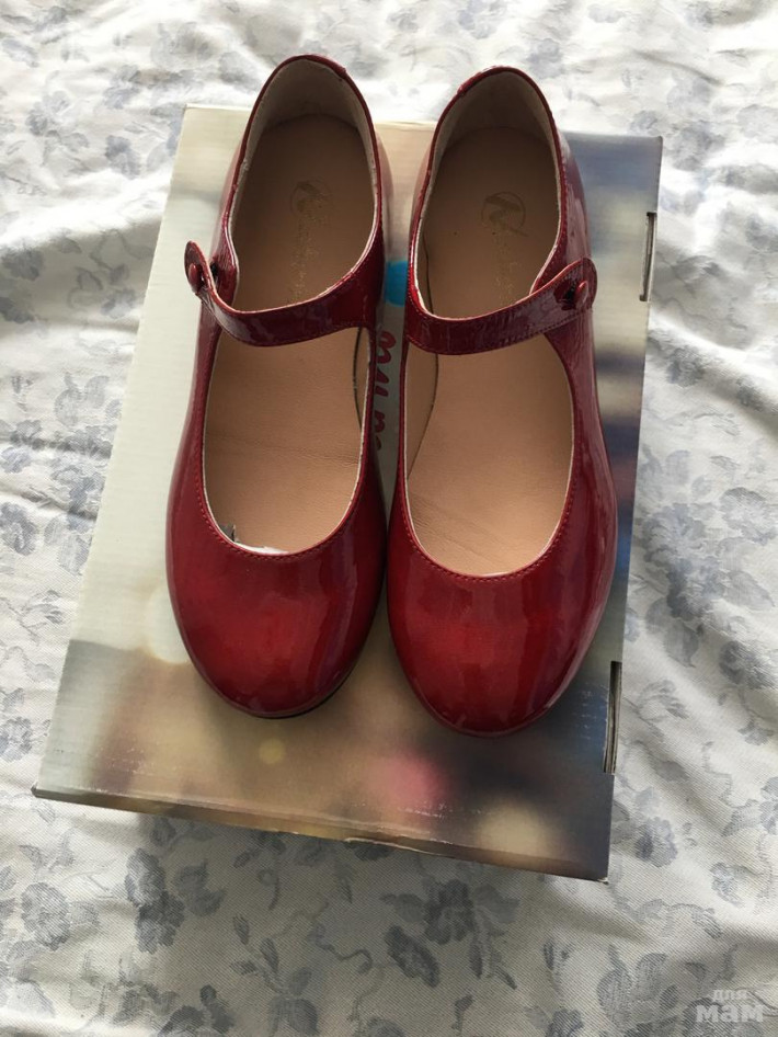 Новые, удобные туфельки, лак цвет ярко-красный, внутри кожа, подошва кожа, по стельке около 22см