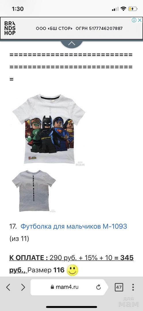К ОПЛАТЕ: 330 руб. + 15% + 10 руб. = 390 руб., размер 128