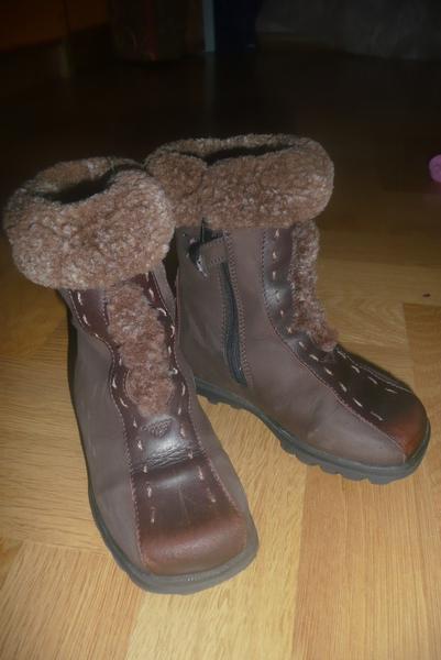 Сапоги Bartek - б/у, состояие очень хорошее. Натуральная кожа, нубук, натуральный мех. Носили немного - не стоптаны, мех не примят, но краску на носах стерли очень быстро, но на фоне нубука она не слишком выделятся. На узкую или среднюю ногу. Размер 25 - 15 см по стельке. 450 рублей.