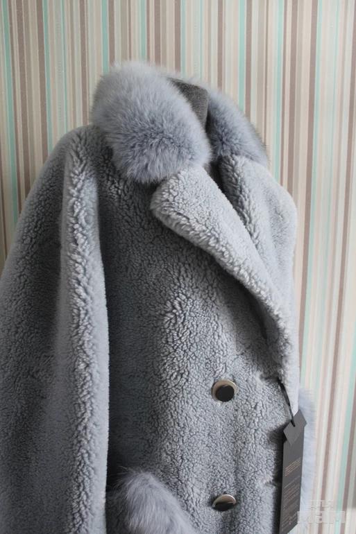 Двубортное классической пальто, английский воротник+карманы отделка натуральный мех песца, что добавляет ей изысканности, к тому же невероятно приятное ощущение при носке!