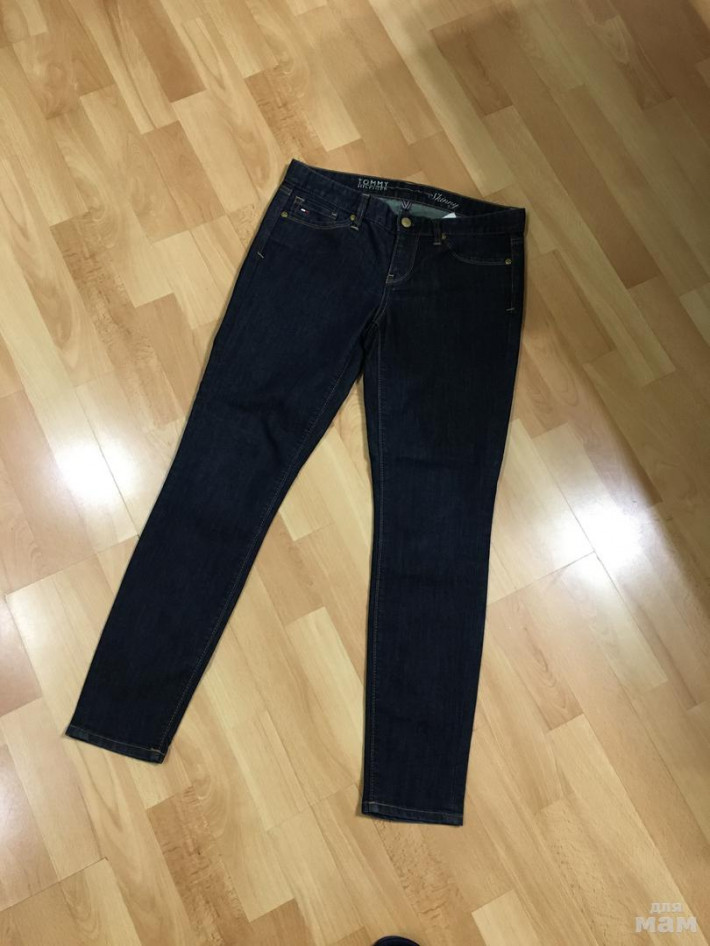 Скинни, стрейч, темно-синие, посадка идеальная, на размер S. Не носились, состояние новых, но есть малозаметный дефект от звонка (на фото).