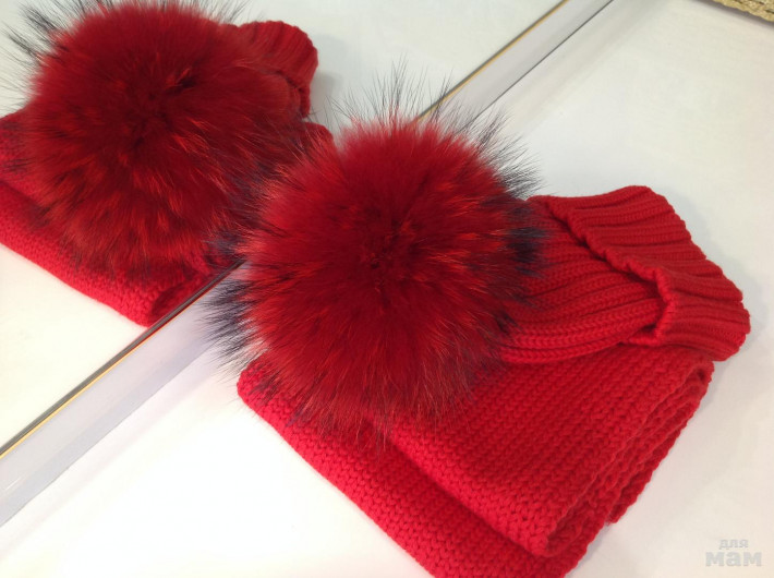 Комплект размер 4. Будет хорошо на ог 50-53. Состояние идеальнейшее !! Помпон съёмный на лентах, был маленький кривобокий лиса, но с ним не носили , заменила сразу на большой красивый , ровный с иглами енот . 4800 руб