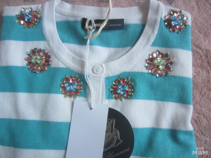 BLUMARINE Шикарная кофточка , оригинал куплена в Италии , маркировка 14 лет , подойдёт девочке подростку и стройной девушке) , состав 73 % вискоза 27 % акрил , отделка стразами Сваровски , очень мягкая и смотрится красиво ! Забрать в Москве можно м Митино , в регион отправлю почтой за счёт покупателя ! Замеры длина по спинке 49 см рукав 56 см ширина подмышек 40 см ! Кофточка новая с этикетками !