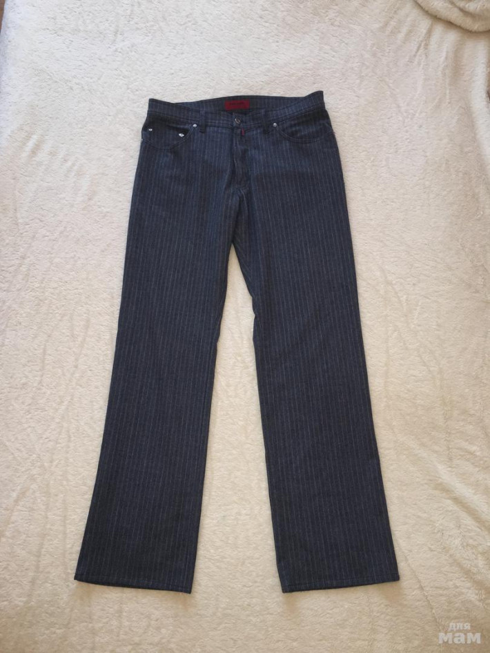 Продам суперские мужские брюки известного европейского бренда Pierre Cardin. Оригинал. Состояние отличное, муж успел одеть всего пару раз на выход, а потом поправился) Размер указан 34/35, это наш рос. примерно 50-52. Состав на фото, на ощупь достаточно плотные, мягкие, очень приятная ткань. Цвет - серый, со светло-серой полоской. Крой прямой, классика.