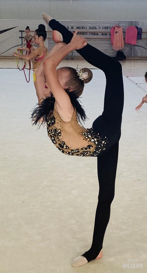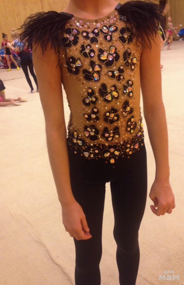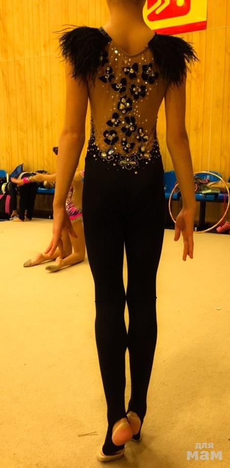 Чёрный комбинезон (купальник) для выступлений по художественной гимнастике.