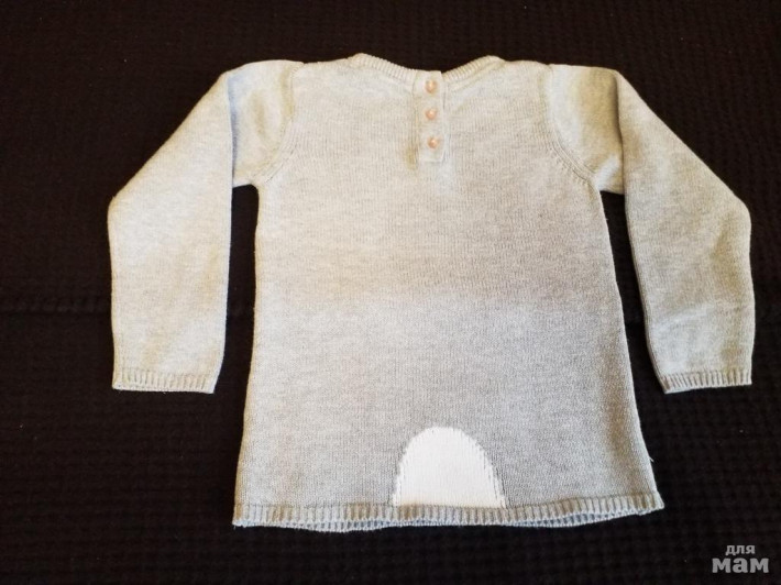 Вышлю почтой из МосквыПрекрасный хлопковый 100% вязаный джемпер фирмы Mothercare , размер 4-5 лет рост до 110 см. Состояние очень хорошее, носили от силы месяц весной, а к осени стал мал. Застегивается на 3 очаровательные пуговки -сердечки, украшен связанным зайчиков спереди и хвостиком сзади. Дочь была в восторге от него. Покупала за 1849 р.