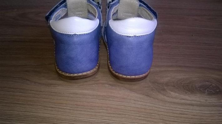 Сандалики на первые шаги. Соответствуют всем требованиям к первой обуви. 20 размер, по стельке 12,5 см. На узкую ножку, т.к. взъем узкий. В идеале. Одели пару раз дома, сынок не любит дома в обуви ходить. Так и переросли их.